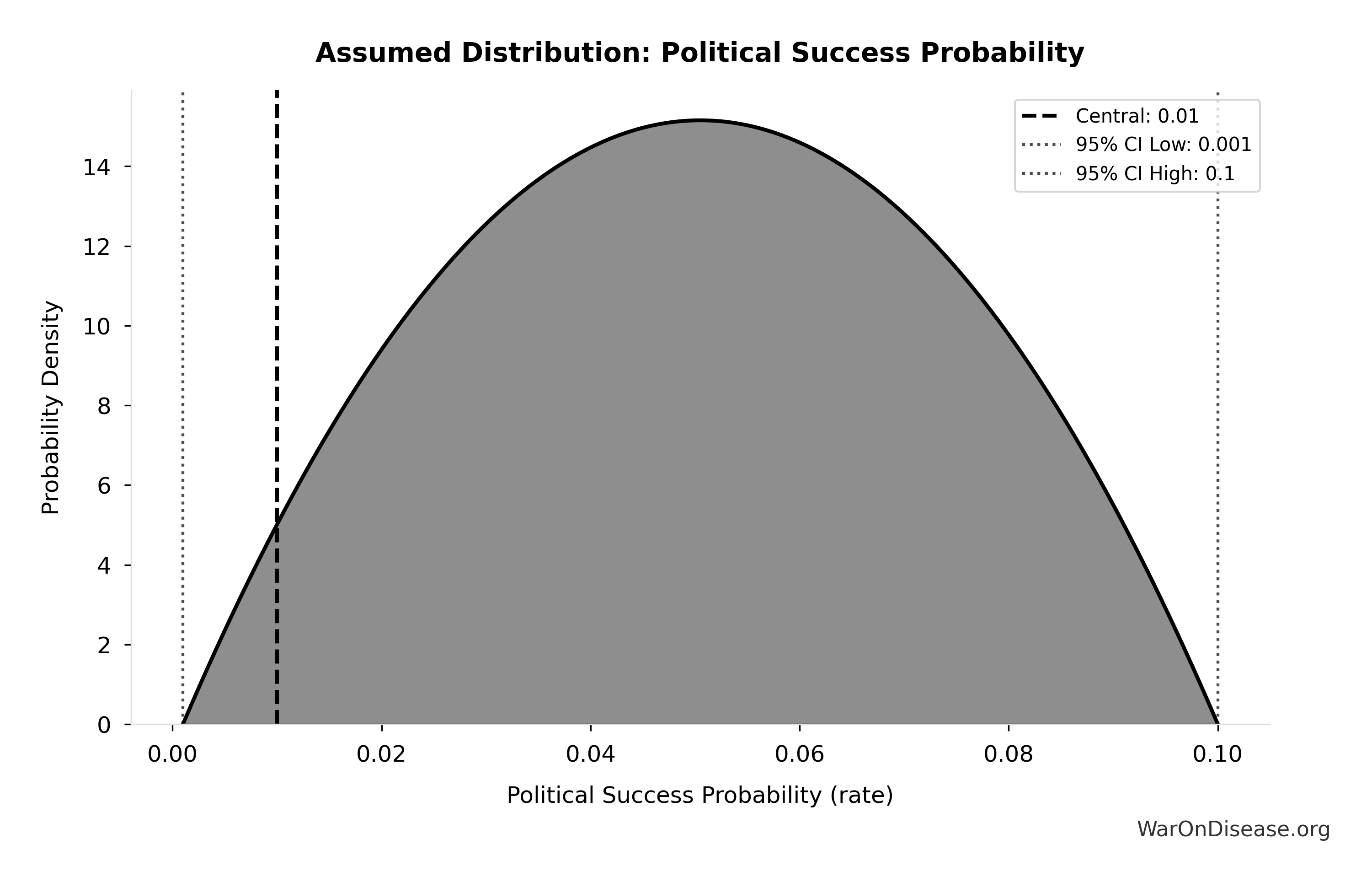 Cost-effectiveness analysis under political uncertainty: Demonstrates that even at 1% adoption probability, risk-adjusted cost-effectiveness ($13/DALY) exceeds established interventions like malaria bed nets by 7.07×.