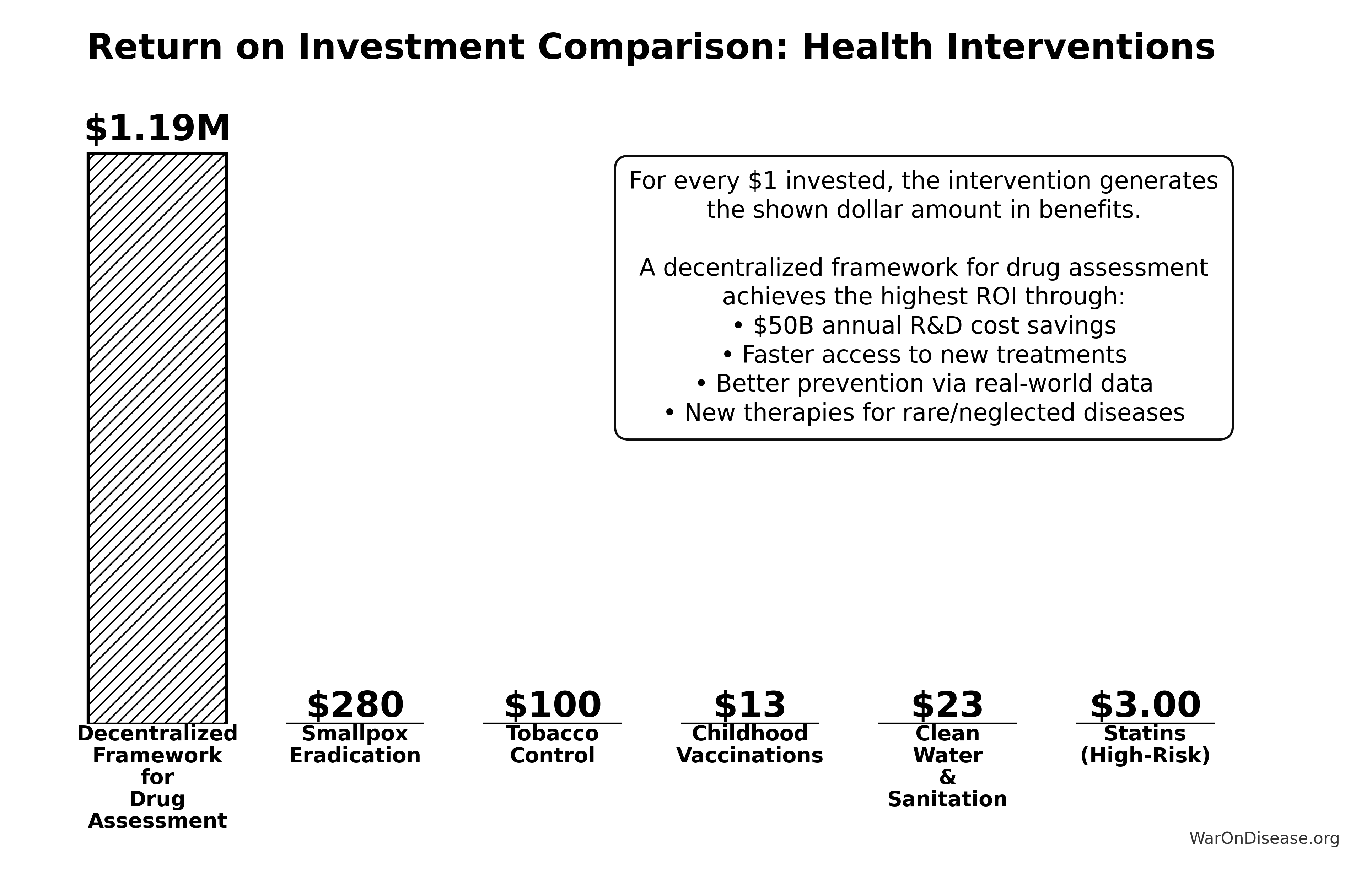 - Complete case: 1.19M:1 ROI including all eight benefit streams ($155B annually)
